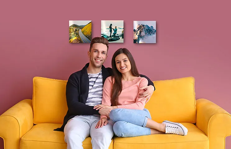 Erstellen Sie einen 6-teiligen Metallabdruck für eine eindrucksvolle Fotowand, die perfekt zu Ihrem modernen Einrichtungsstil passt.